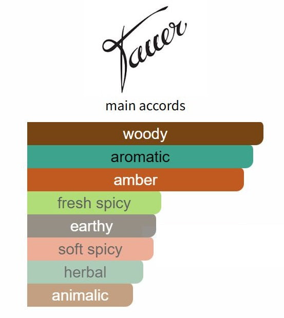 The top is combined of coriander, cumin, with a hint of petitgrain. The heart features rock rose and jasmine. The base includes cedar, vetiver, and ambergris.