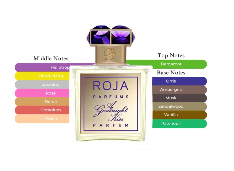 A Good Night Kiss Parfum begins with the subtle sweetness of Carnation and May Rose. The opening is crisp and invigorating, featuring zesty notes of Bergamot and aldehydes for a refreshing lift. As the fragrance evolves, it reveals a floral heart enriched with the soft, powdery nuances of Violet and Orris. The overall blend conveys a sense of warmth and intimacy, leaving a memorable impression. A Good Night Kiss Parfum is a mesmerizing perfume that captures the elegance and allure of a tender moment.