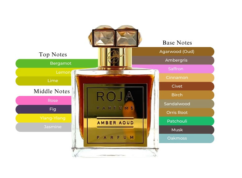 Amber Aoud opens with a refreshing burst of citrus, featuring top notes of sparkling Bergamot, zesty Lime, and bright Lemon. As the fragrance evolves, the heart notes reveal a bouquet of opulent florals, including the romantic Rose, creamy Fig, exotic Ylang-ylang, and lush Jasmine, creating a rich and harmonious middle.