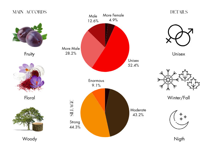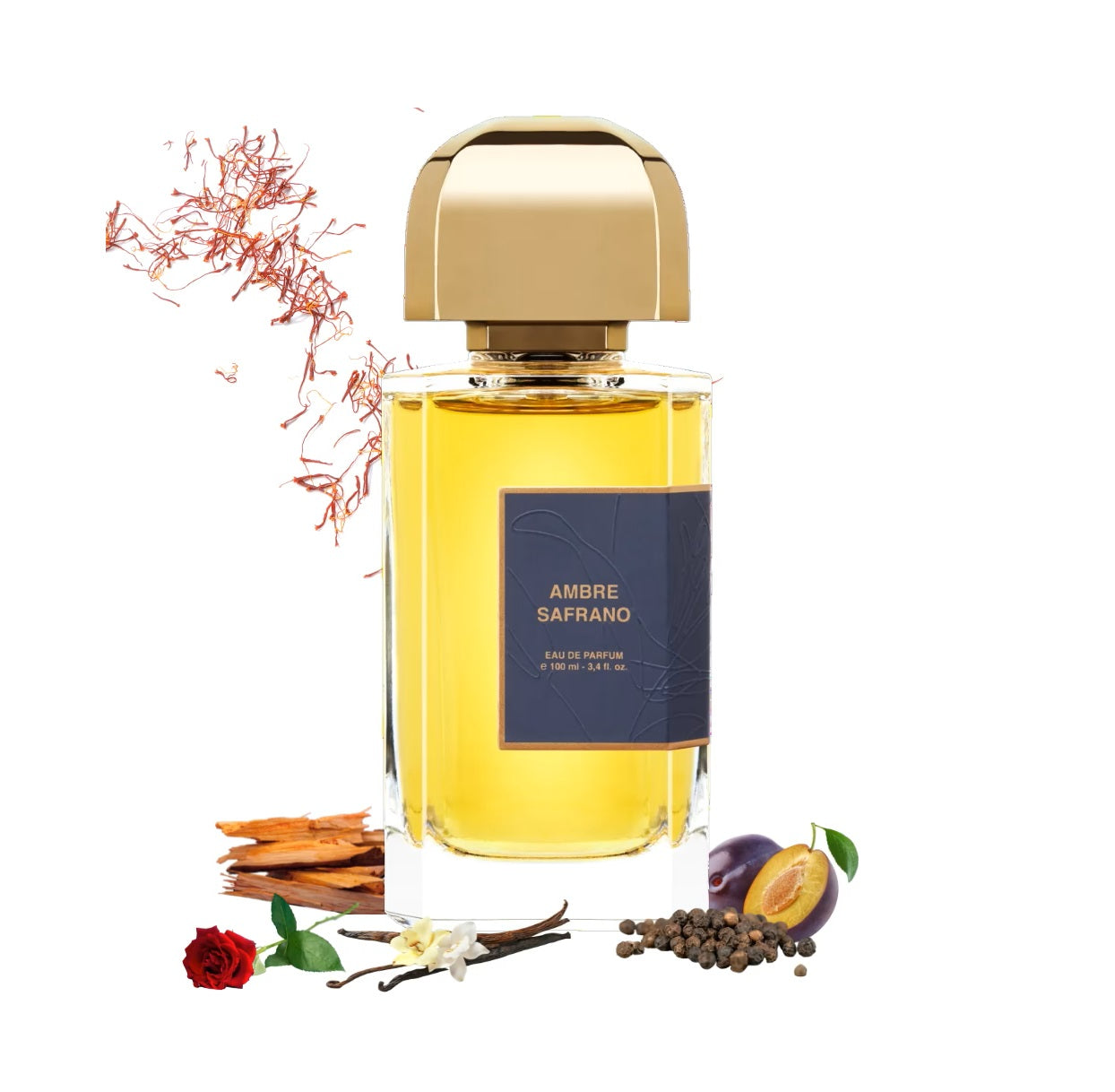 Ambre Safrano offer a mesmerizing blend of Saffron accord, Black pepper oil from Madagascar, and Plum accord. As the fragrance unfolds, the heart notes reveal a sophisticated mix of Rose absolute from Turkey, Olibanum absolute, and Black leather accord. This layer adds depth and a touch of elegance to the scent profile. The base notes provide a rich and lasting impression with Oakwood CO2 from France, Sandalwood oil from New Caledonia, and Vanilla bean extract CO2 from Madagascar.