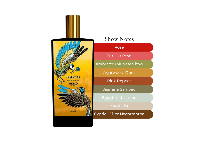 Argentina features a harmonious blend of pink pepper, rose essence, jasmine sambac, Egyptian jasmine absolute, magnolia oil, and cypriol, offering a truly unique olfactory experience. Memo Argentina is a vibrant and memorable oriental floral fragrance that makes a lasting impression. Its lively and unforgettable scent captures the essence of Argentina, evoking the passion and charm of a graceful tango.