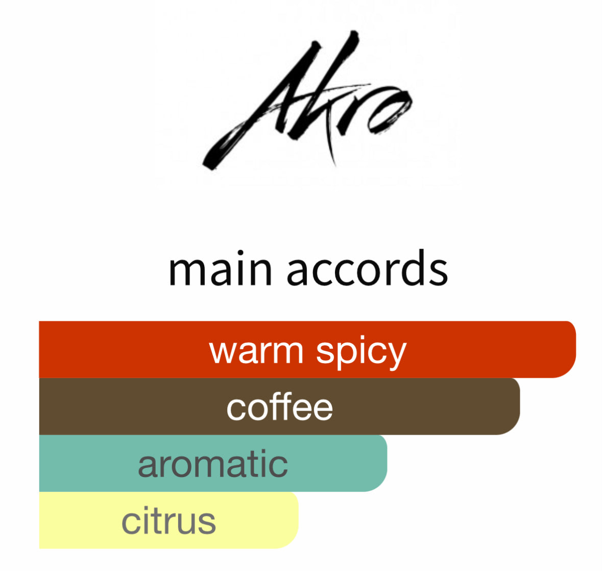 Akro Awake is a coffee-inspired fragrance that creates an irresistibly authentic coffee aroma. The deep black coffee notes mixed with cardamom, vetiver and lemon create an intoxicating aroma perfect for wearing any time of the day or night.