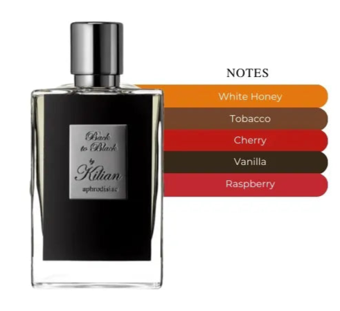 Back to Black by Kilian belongs to the Kilian Smokes collection, evoking the classic aromas of Bakhoor, incense, and tobacco. The fragrance journey begins with a rich blend of honey infused with sweet spices, harmonizing with a captivating smoky incense and vanilla. This intriguing scent is designed to ignite small sparks in the darkest nights, beneath the blackest skies adorned with the brightest stars.