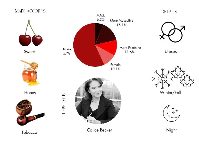 The base notes of sweet tobacco, warm amber, cistus labdanum, nutty almond, and creamy vanilla leave behind a lingering, velvety trail. The result is a fragrance that is both complex and comforting.