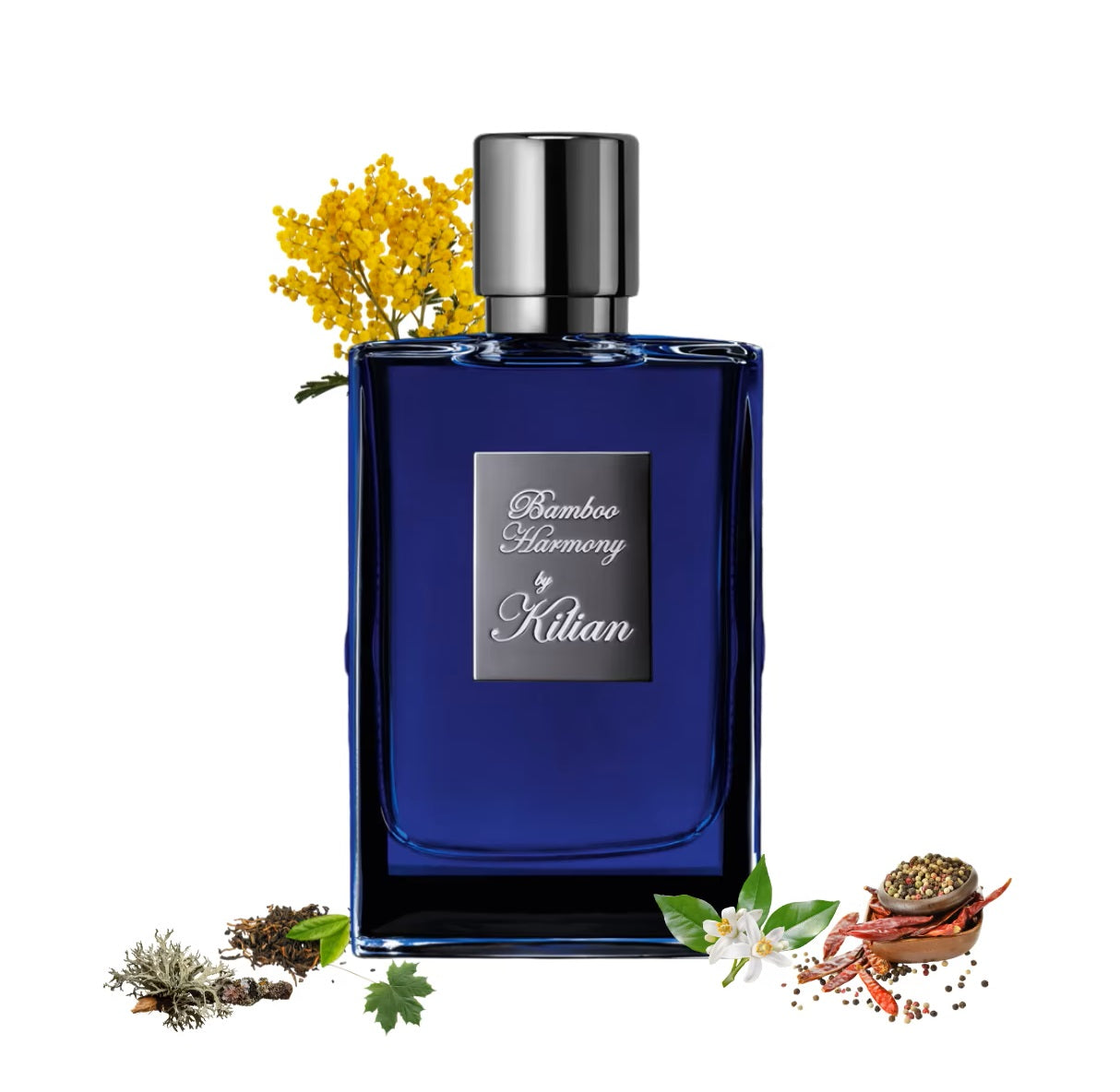 Bamboo Harmony by Kilian features top notes of Bergamot, Neroli, and Bitter Orange, harmoniously combined with heart notes of Tea, Bamboo, Mimosa, and Spices. The base notes of Fig Leaf, Holly, and Oak Moss contribute to its richness and lasting appeal. Bamboo Harmony is a crisp and verdant fragrance that inspires a feeling of calm and alignment with nature.