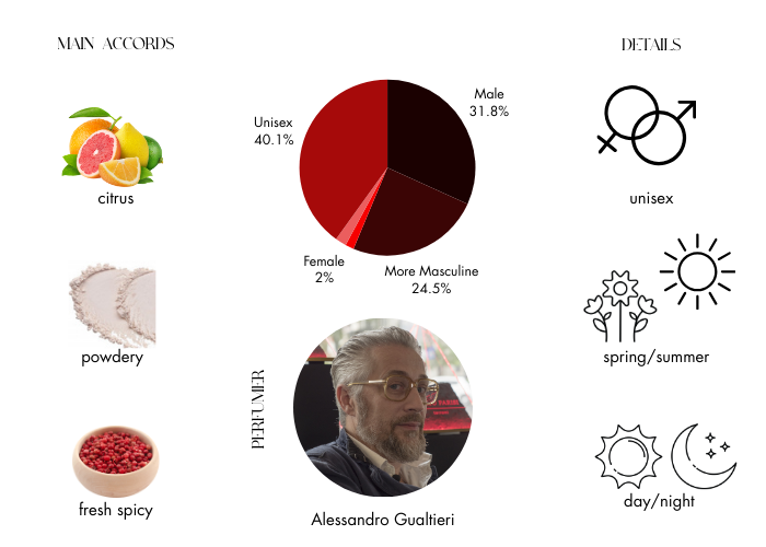 Bergamask features a Citrus Aromatic profile that delights the senses with its rich blend of ingredients. The fragrance opens with a lively, refreshing, and sweet burst of bergamot, making it an enchanting scent that invites romance and curiosity. True to its name, it skillfully intertwines two key notes,bergamot and musk.
