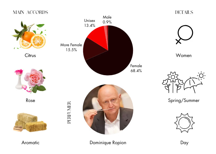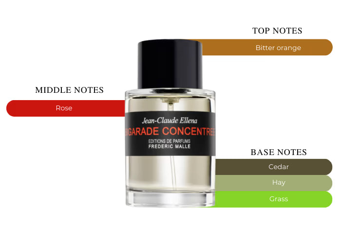 Bigarade Concentree features Bitter Orange, delivering a refreshing and energizing aroma. At its heart lies the subtle essence of Rose, which adds a touch of elegance and femininity. The base notes of Grass, Hay, and Cedar contribute a gentle earthiness and warmth, resulting in a harmonious olfactory experience. Bigarade Concentree embodies purity and minimalism while also hinting at allure and sensuality.