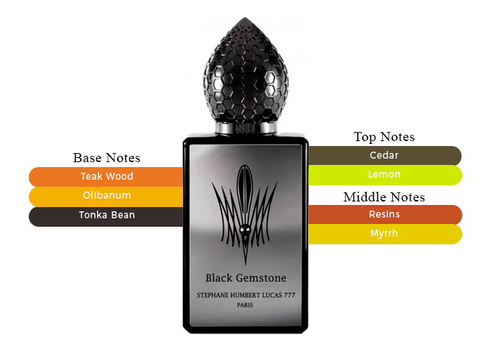 Black Gemstone by Stephane Humbert Lucas pays homage to the sacred Black Stone located in the Grand Mosque of Mecca. The scent captures profound, spiritual, and powerful emotions, reflecting the revered number 7. It opens with a robust, resinous aroma derived from the top notes of Cedar and Lemon. This evolves into a lush heart of Resins and Myrrh. The base notes feature a harmonious blend of Teak Wood, Olibanum, and Tonka Bean, completing this enchanting fragrance.