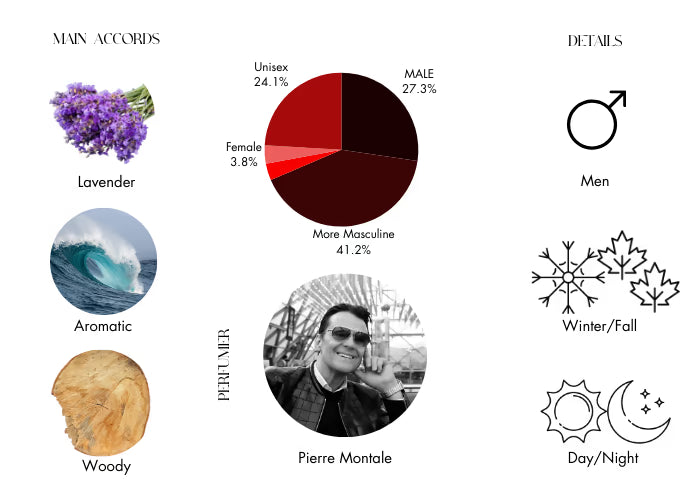 The base notes of Vetiver, Woods, Leather, Amber, and White Musk add a final layer of depth and richness, leaving a warm and long-lasting trail.