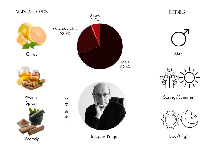 An aromatic freshness opens, lingering on the warm, addictive fullness of Cedar and Sandalwood from New Caledonia that sweeps throughout the intense, woody fragrance.