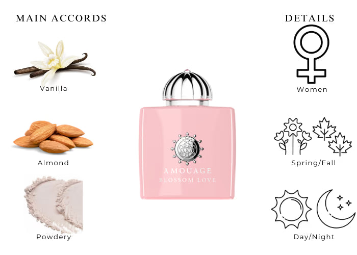 Blossom Love opens with a light and invigorating mix of cherry blossom nectar and rose liquor, creating an enchanting floral trail. At its heart, the perfume unfolds with a warm and romantic essence, featuring notes of amaretto liqueur and a stunning bouquet of yellow and fresh roses. The overall composition is harmoniously balanced, blending the sweetness of almond, the powdery sophistication of heliotrope, and the warmth of amber.