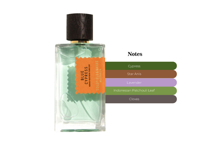 A sophisticated fragrance of rich woods and aromatic spices that is at once invigorating and grounding. Goldfield and Banks Blue Cypress evokes the freshness of early morning dew and vibrant green leaves filled with life.