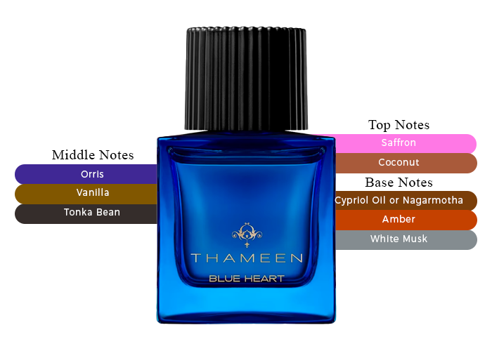 Thameen's Blue Heart captures the vibrant lifestyle of the diamond's renowned socialite owners. The perfumer expertly combines luxurious notes of saffron, vanilla, and tonka bean to create a captivating olfactory experience. With above-average projection and longevity, it leaves a memorable impression.