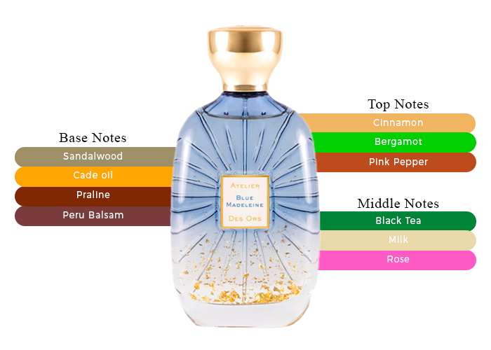 Atelier Des Ors Blue Madeleine is enhanced by smoky tea notes and a hint of spices. The composition begins with top notes of bergamot, pink pepper, and cinnamon, conjuring memories of a delectable madeleine. This fragrance serves as a tribute to the profound emotional impact of scent, weaving together a rich tapestry of family stories within its aroma.