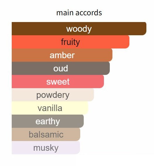 Bois d'Oud by Perris Monte Carlo opens with refreshing top notes of bergamot, followed by a heart that features a floral and fruity medley of plum, peach, rose, iris, jasmine, and orange blossom. The base notes of blackwood, vanilla, ambergris, labdanum, patchouli, cedar, and musk create a warm and sensual backdrop.