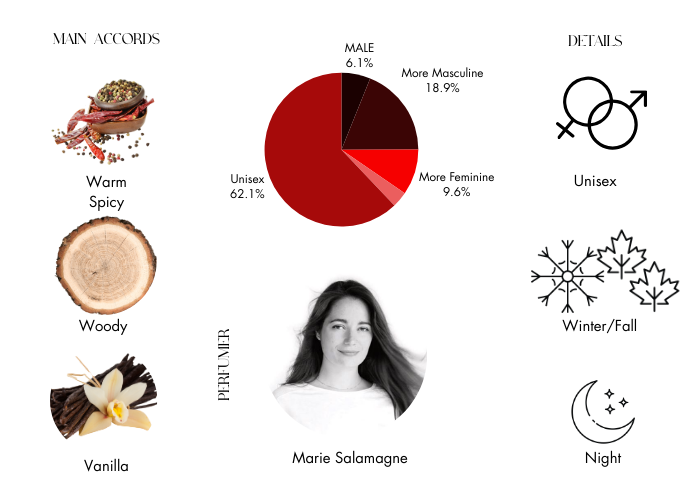 By the Fireplace opens with intriguing top notes of cloves, pink pepper, and orange blossom. These vibrant notes pave the way for a heart that beats with the rich warmth of chestnut, guaiac wood, and juniper. As the fragrance settles, it reveals a comforting base of vanilla, Peru balsam, and cashmeran, enveloping you in a cozy, warm embrace.