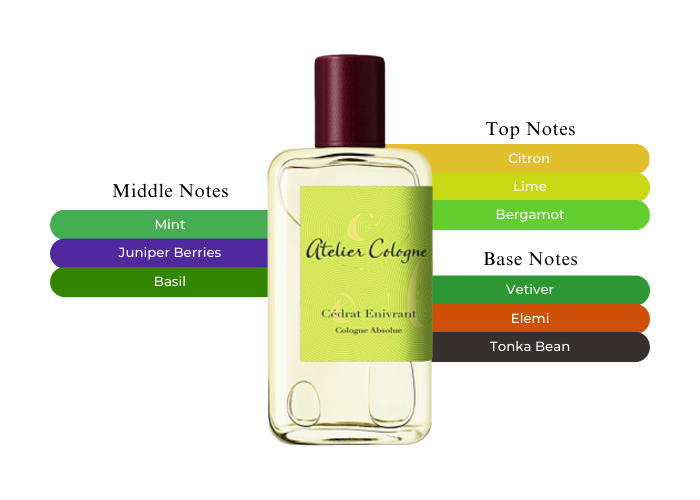 Atelier Cologne Cedrat Enivrant opens with top notes of Moroccan Cedrat, Mexican Lime, and Calabrian Bergamot. The heart reveals a fragrant blend of Chinese Mint, Egyptian Basil, and Macedonian Juniper Berries. Finally, the base notes deliver a warm finale with Brazilian Tonka Bean, Haitian Vetiver, and Philippine Elemi. This elegant and timeless scent evokes the thrill of your first sip of a cocktail.