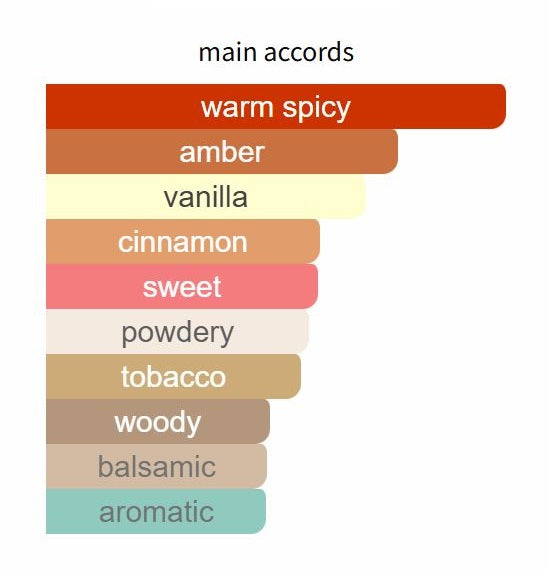 The base notes deliver a lasting impression with a sophisticated mix of benzoin, tolu balm, ambroxan, and the creamy sweetness of tonka bean and Madagascar bourbon vanilla. These elements blend beautifully to leave a warm, comforting trail that lingers long after you leave the room.