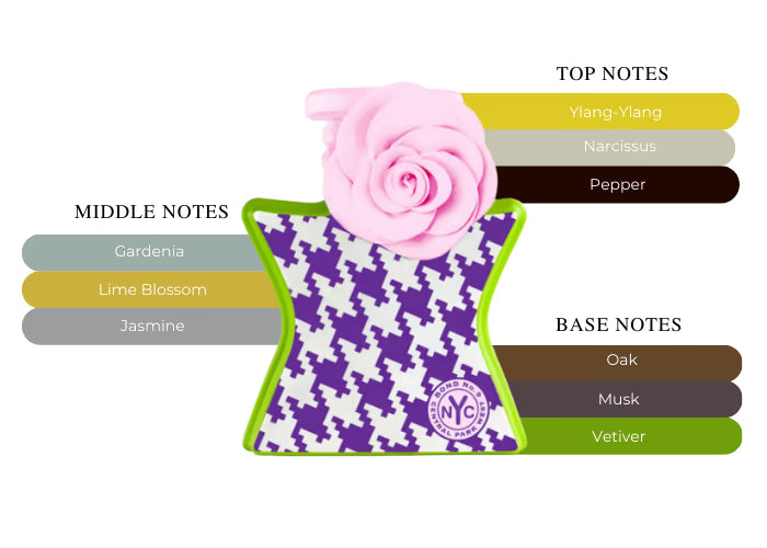 Central Park West by Bond No.9 opens with a vibrant burst of narcissus, ylang-ylang, and black pepper, awakening your senses with its bold and invigorating top notes. As the fragrance unfolds, the heart notes of gardenia, jasmine, linden, and orris reveal a luscious and sophisticated bouquet that embodies the elegance of springtime blooms. The base notes of vetiver, musk, tree moss, and white oak provide a grounding finish, leaving a lasting impression of warmth and earthiness.