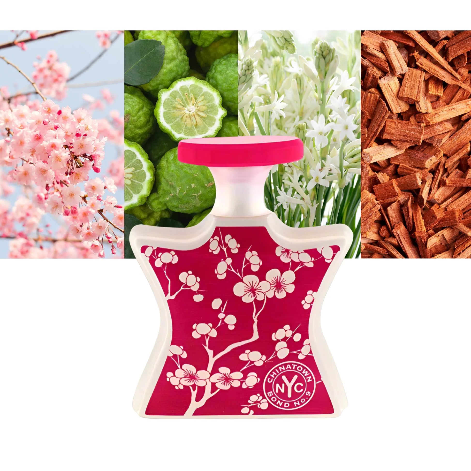 Chinatown by Bond No9 opens with Peach Blossom and Bergamot, greeting you with a fresh, fruity opening that sets the stage for the floral heart notes. Gardenia, Tuberose, Peony, and Orange Blossom come together to form a lush and romantic bouquet that is both elegant and enchanting.