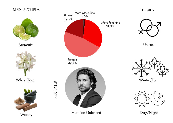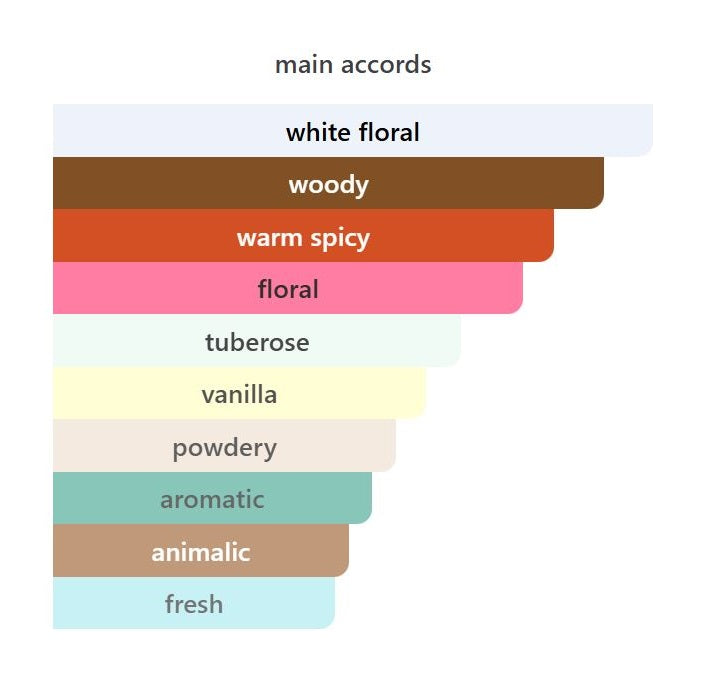 The base notes of Patchouli, Cedarwood, Vanilla, Sandalwood, Cardamom, and Guaiac Wood provide a warm and sophisticated finish to this fragrance.