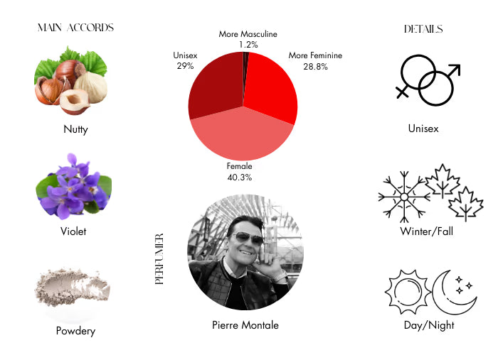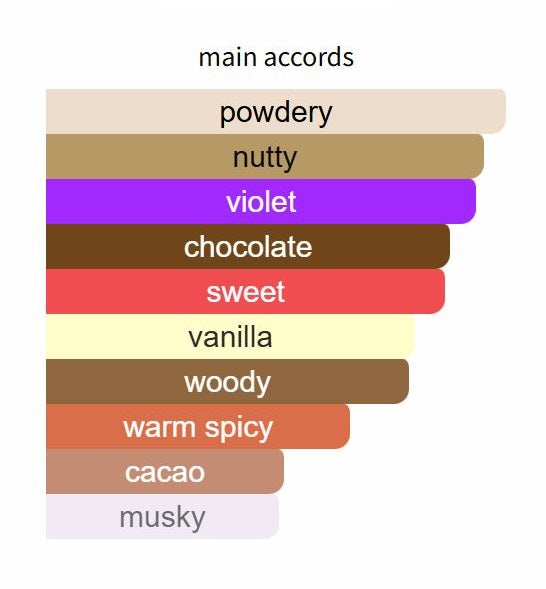 Choco Violette opens with an invigorating blend of orange, bergamot, and hazelnut. These top notes create a fresh and nutty introduction that is both inviting and dynamic. As the scent evolves, the heart notes of dark chocolate and violet come to life, offering a decadent and floral middle layer that is truly enchanting. The base notes of Madagascan vanilla and white musk provide a soothing and lasting finish, wrapping you in a warm and comforting embrace.