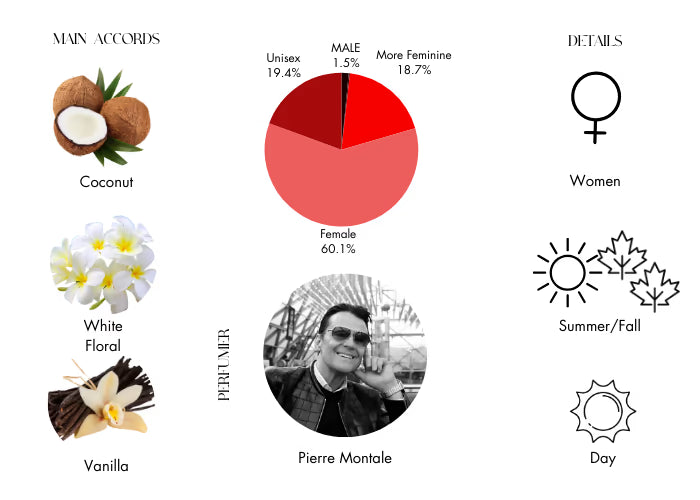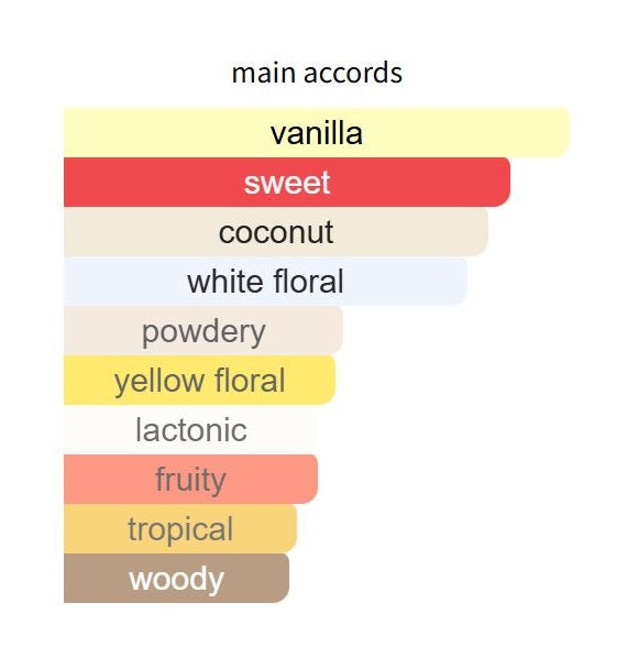 Coco Vanille opens with Coconut and White Peach create a refreshing and inviting opening, reminiscent of tropical paradises. As the fragrance evolves, the heart notes of Ylang Ylang, Tiare Flower, and Egyptian Jasmine unfold, adding a rich floral bouquet that deepens the scent’s complexity and elegance.
