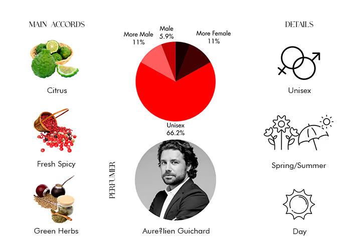 Cologne Cedrat opens with the refreshing and zesty note of Bergamot, instantly energizing your senses. As the scent develops, the heart reveals a harmonious blend of Pink Pepper and Black Pepper, adding a spicy and sophisticated touch. The base note of Mate provides a grounding, earthy finish that lingers beautifully on the skin.