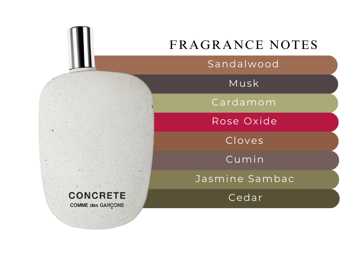 Comme Des Garçons Concrete features a woody composition blended with floral-synthetic notes, resulting in a captivating aroma. Notable for its longevity and impressive sillage, Concrete distinguishes itself in the fragrance world. Comme Des Garçons is celebrated for its abstract and fluid scents, often drawing inspiration from unconventional sources, and Concrete is no exception, challenging norms and offering a unique fragrance that pushes boundaries.