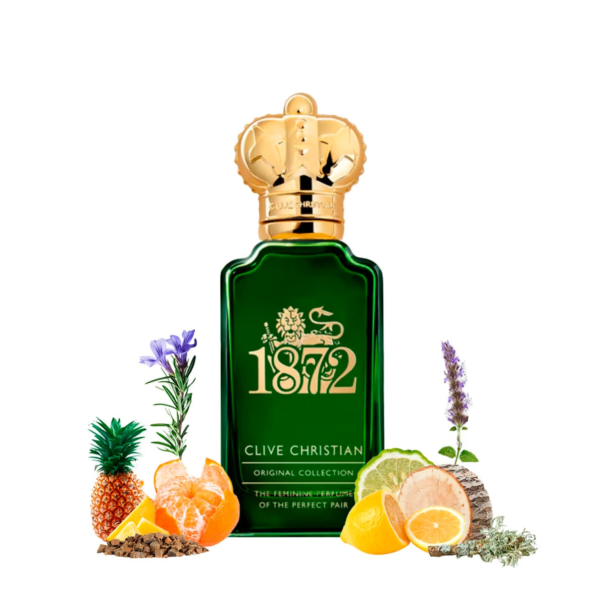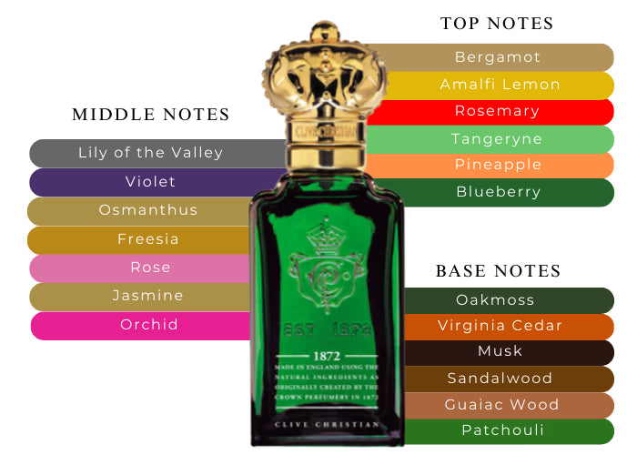 Clive Christian's 1872 Feminine opens with an invigorating blend of top notes, featuring the vibrant scents of pineapple, bergamot, blueberry, rosemary, tangerine, and lemon. These fresh and zesty notes create an irresistible first impression that is both refreshing and uplifting.
