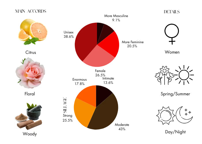 The base notes provide a warm and lasting finish, with rich and earthy scents of oakmoss, guaiac wood, musk, patchouli, sandalwood, and cedarwood. These deep and sensual notes ensure that the fragrance lingers on the skin, leaving a memorable and enchanting trail.