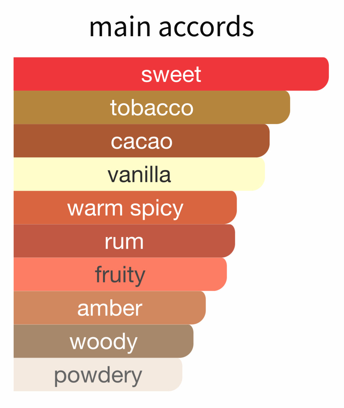 Vanille Havane features a mesmerizing combination of rum, dried fruits, cocoa, cigar, and dark florals, revealing a spicy-gourmand scent that endures with impressive longevity. The primary accords blend sweet, tobacco, cacao, vanilla, rum, fruity, warm spicy, amber, woody, and powdery notes, resulting in a heavier, more intense fragrance with substantial body and excellent sillage. Vanille Havane provides a remarkable 3D interpretation of the unique ingredient, vanilla.