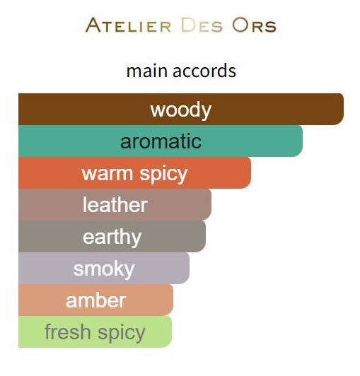 Cuir Sacre features 24K gold flakes, a hallmark of the Atelier Des Ors collection. Cuir Sacre, which translates to "sacred leather," reflects the meticulous craftsmanship behind its creation. The scent pays tribute to the enchanting Andalusian dream, particularly inspired by the leather legacy of Cordoba's Old Town. Its key notes include dry woods, spices, and the captivating warmth of saffron, complemented by the strength of vetiver.