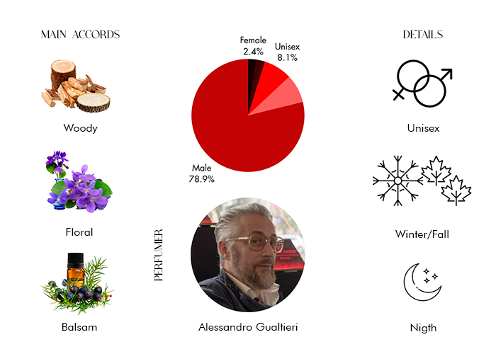 Cuoium opens with invigorating top notes of black pepper and mandarin, setting the stage for a bold and spicy introduction. As the fragrance unfolds, the heart reveals a delicate touch of violet, adding a subtle floral elegance. The base notes are a rich tapestry of animalic, cade wood, cedar, incense, labdanum, leather, patchouli, and vanilla, creating a deep and spicy aroma that lingers on the skin.