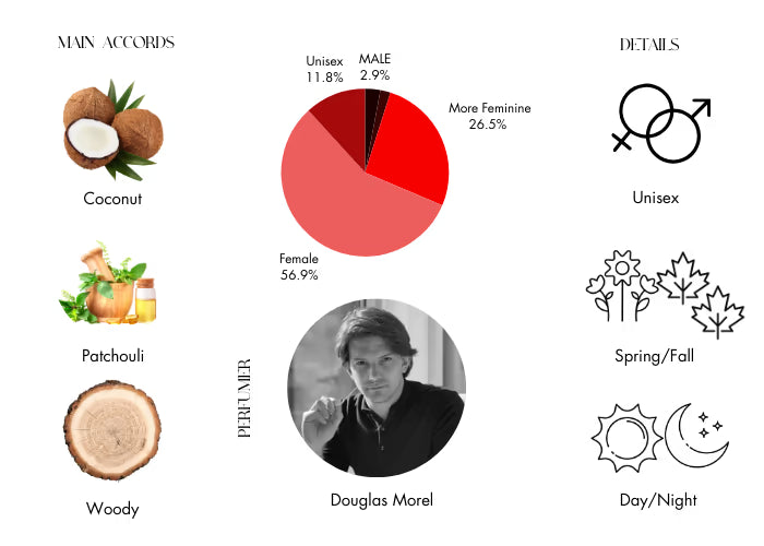 Bonbon Pop begins with vibrant notes of white peach and exotic coconut, reminiscent of the sweetness of candy and evoking the carefree joy of childhood. The heart features patchouli and jasmine, culminating in a warm base of musk, precious woods, brown sugar, and amber. With its above-average longevity, this fragrance remains a consistently delightful experience.