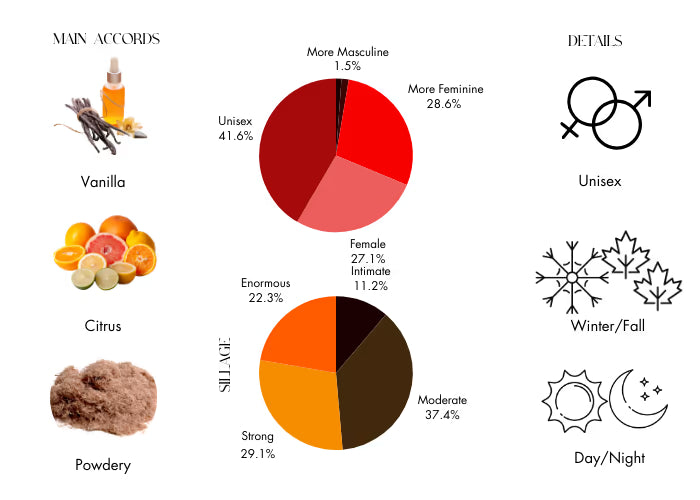 Dulcis in Fundo begins with a fresh, sweet citrus aroma reminiscent of peeling a clementine. This initial burst transitions into the heart of the fragrance, where a luxurious, custardy creme brûlée infused with Grand Marnier adds a layer of indulgence. The base features a rich vanilla drydown that lingers for hours, offering a truly delightful experience.