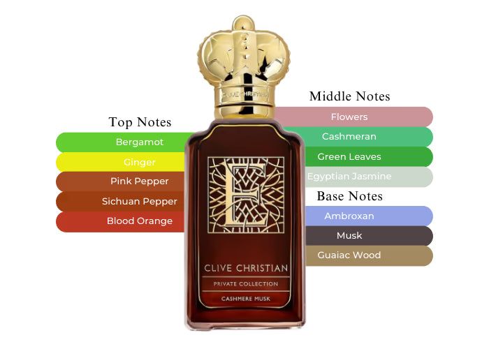 E Cashmere Musk begins with lively top notes of Bergamot, Ginger, Pink Pepper, Sichuan Pepper, and Blood Orange. It exudes a sense of quiet strength and elegance, delivering a soothing and comforting experience. This perfume possesses a magnetic charm, subtly enchanting those around you. E Cashmere Musk is a true embodiment of the Clive Christian fragrance house, making it the perfect choice for those who desire an understated yet impactful presence.