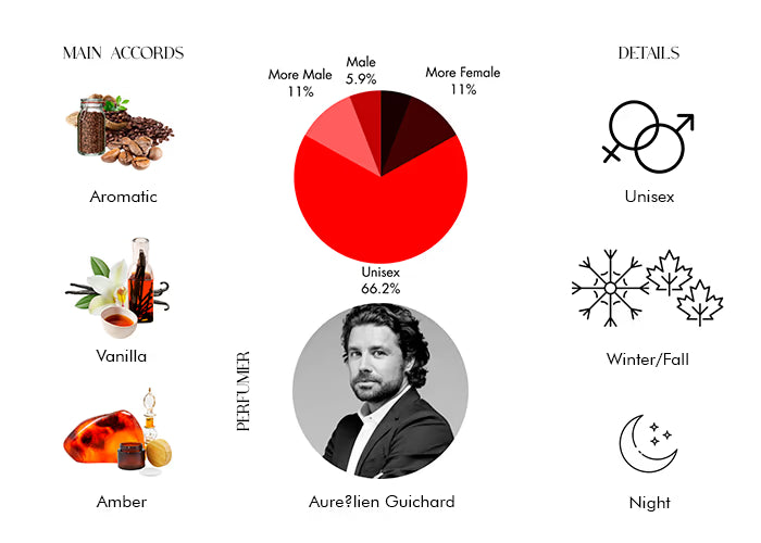 Encens Suave Extrait opens with an invigorating burst of coffee, awakening the senses with its deep, roasted aroma. As the fragrance unfolds, the heart reveals a mesmerizing combination of frankincense and vanilla absolute, offering a smoky yet creamy contrast that is both mysterious and inviting. The base lingers with the rich warmth of siam benzoin, amber, and Spanish labdanum, wrapping you in a comforting and sensual embrace.