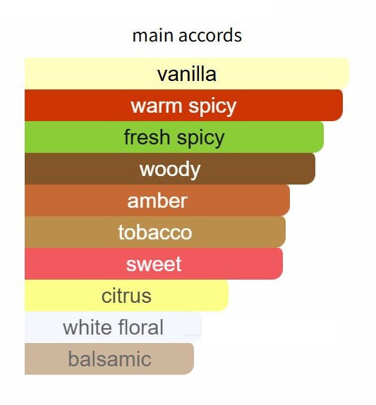 The base notes add depth and warmth, featuring a harmonious mix of Cognac, Vanilla, Benzoin, Tobacco, Ginger, Cardamom, Ambergris, Sandalwood, Pepper, and Patchouli. This rich combination ensures a lasting and memorable impression, perfect for any occasion.