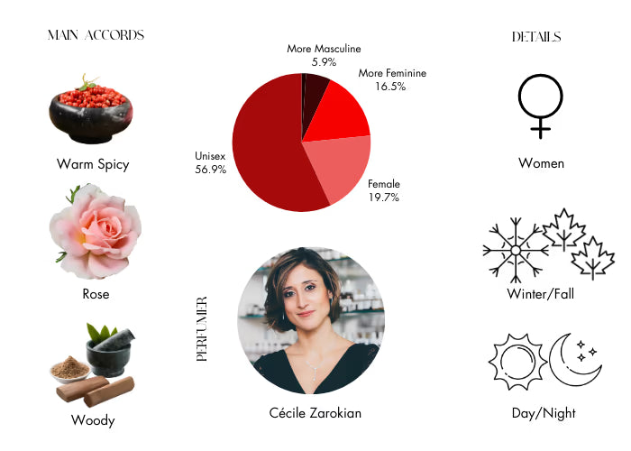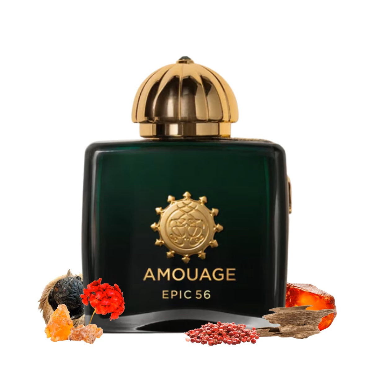 Epic 56 Woman, the top notes of cumin, pink pepper, and cinnamon create a bold and spicy introduction that awakens the senses. The heart of this fragrance reveals a floral and aromatic bouquet with Damask rose, jasmine tea, and geranium, adding a touch of elegance and grace. The base notes unfold a rich and opulent foundation. Olibanum, agarwood (oud), patchouli, sandalwood, amber, orris, musk, guaiac wood, and vanilla come together to create a lasting and unforgettable impression.