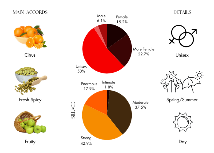 Erba Gold by Xerjoff offers a refreshing burst of Calabrian bergamot, Brazilian orange, Sicilian lemon, and ginger, creating an invigorating opening that awakens the senses. As the scent unfolds, the heart notes reveal a harmonious blend of melon, cinnamon, pear, Guatemalan cardamom, cloves, and green apple, adding a sweet and spicy complexity to the fragrance. The base notes of amber, white musk, Madagascar vanilla, and woody notes provide a warm and enduring finish, ensuring that the scent lingers beautifully on the skin.