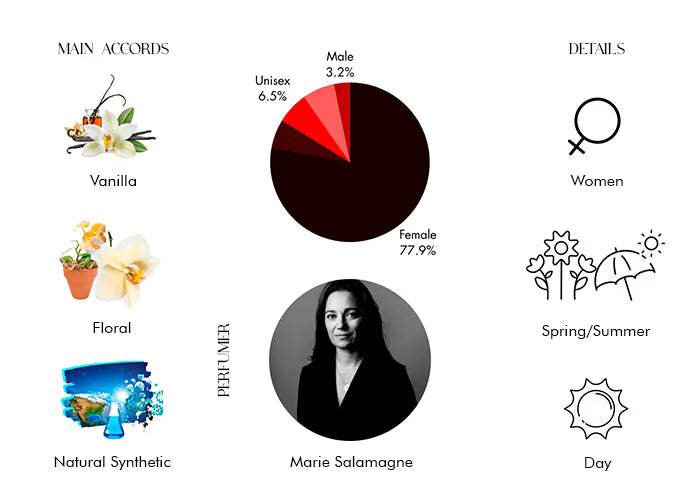 Flora Gorgeous Orchid opens with a sweet, creamy touch of vanilla that immediately captures attention. The heart of the scent blossoms with the delicate and exotic aroma of vanilla orchid, adding depth and sophistication. As the fragrance settles, airy ozonic notes offer a refreshing and modern finish, creating a balanced and long-lasting experience.