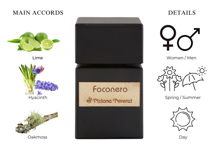 Tiziana Terenzi's Foconero begins with a lively burst of Italian lemon, offering a tart and zesty sensation. The fragrance then unfolds with additional top notes of juniper, thyme, bergamot, and lime, resulting in a refreshing and uplifting scent experience. A subtle hint of ozone and salt adds an enchanting coastal allure. Foconero embodies a free-spirited essence, capturing the captivating deep blue waters and undulating waves of Italy's Gulf of Sorrento.