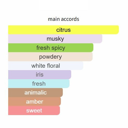 Galloway begins with vibrant top notes of pepper and citrus. These energetic elements gradually transition into a heart of sweet iris and intoxicating orange blossom, infusing an air of elegant sweetness. As the fragrance develops, rich base notes of musk and amber come forth, providing depth and allure. The white floral and iris notes contribute a powdery freshness, while the amber adds a delightful touch of sweetness.