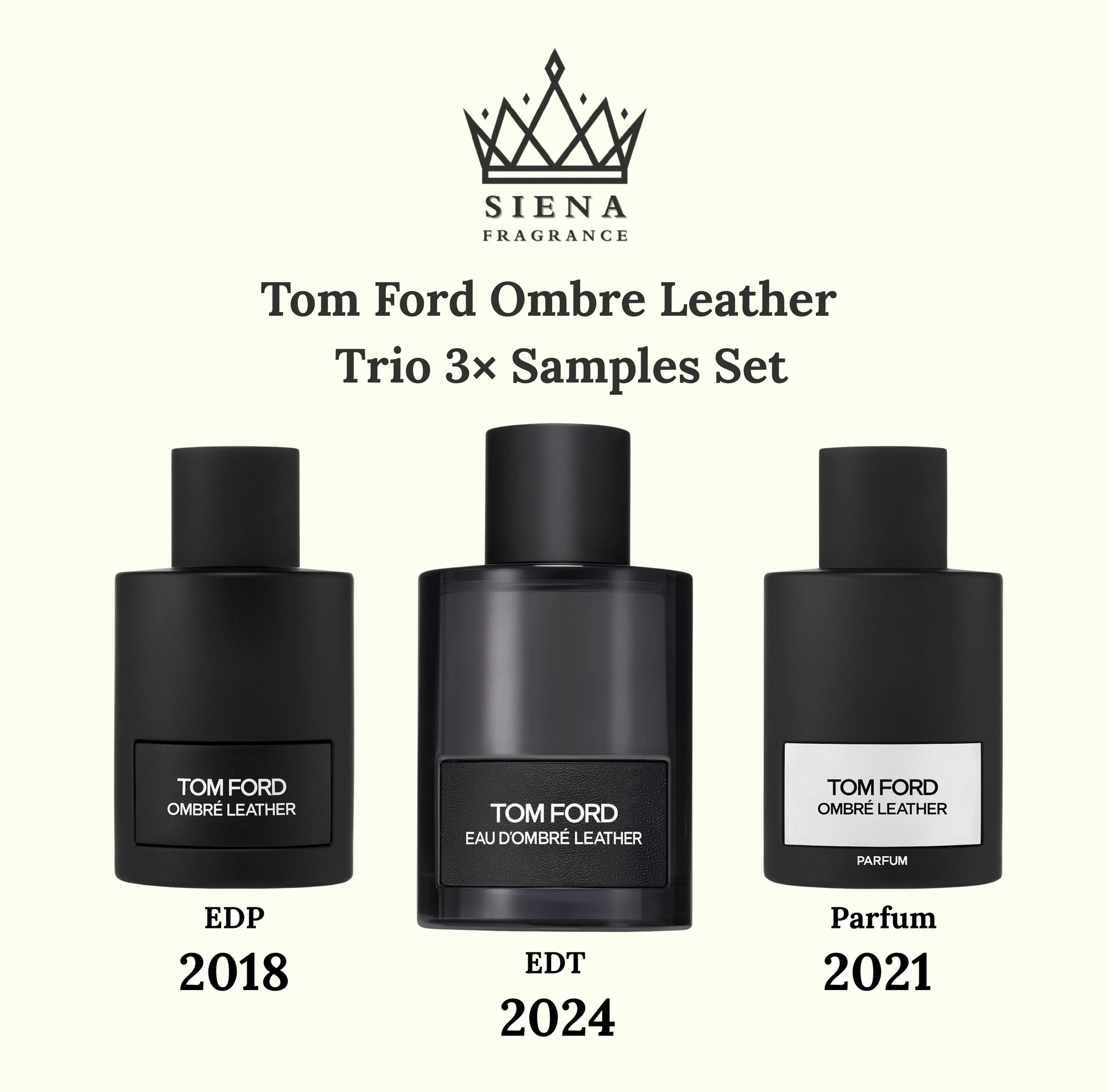 Discover the full expression of Tom Ford Ombre Leather with this curated 3-piece Decant/Sample collection, showcasing every major interpretation of the iconic Ombre Leather DNA.
