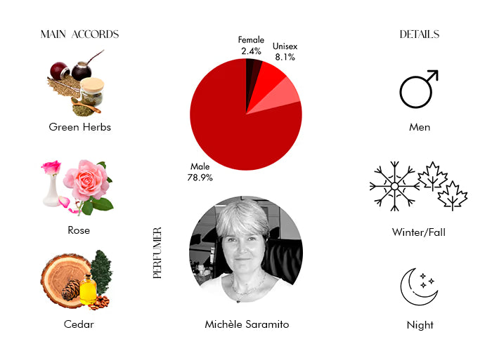 This opens with a captivating blend of top notes, including aromatic Thyme, rich Saffron, fresh Cypress, invigorating Green notes, tantalizing Fruity notes, and earthy Mate.