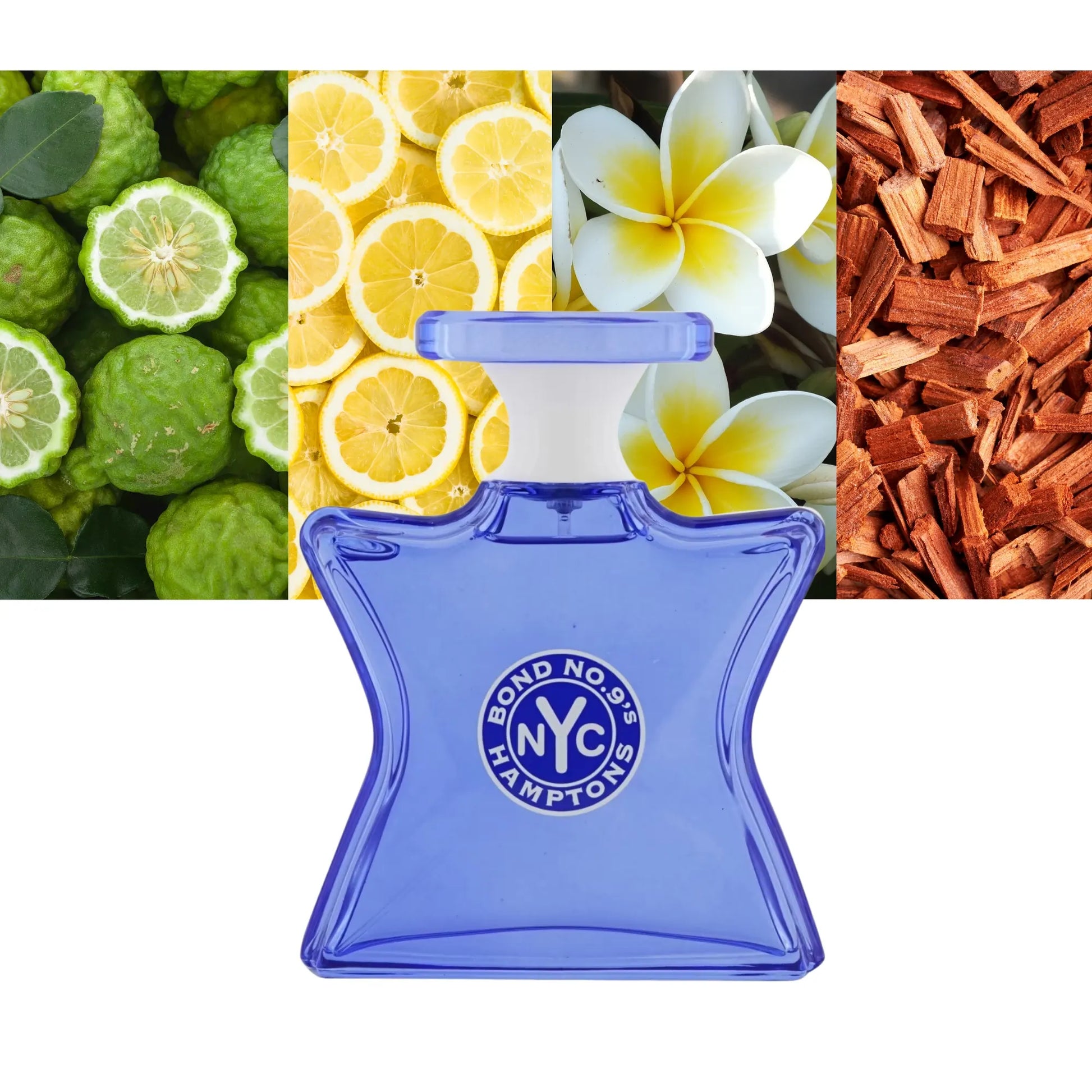 Hamptons Bond No. 9 features key accords of citrus, floral, aromatic, powdery, and woody notes. The top notes are bright and zesty, showcasing lime blossom, bergamot, and sandalwood, which gracefully lead into the heart of the fragrance, where white jasmine, magnolia, and Turkish rose are prominent. The scent is anchored by base notes of amber, lending a subtle muskiness to its character.