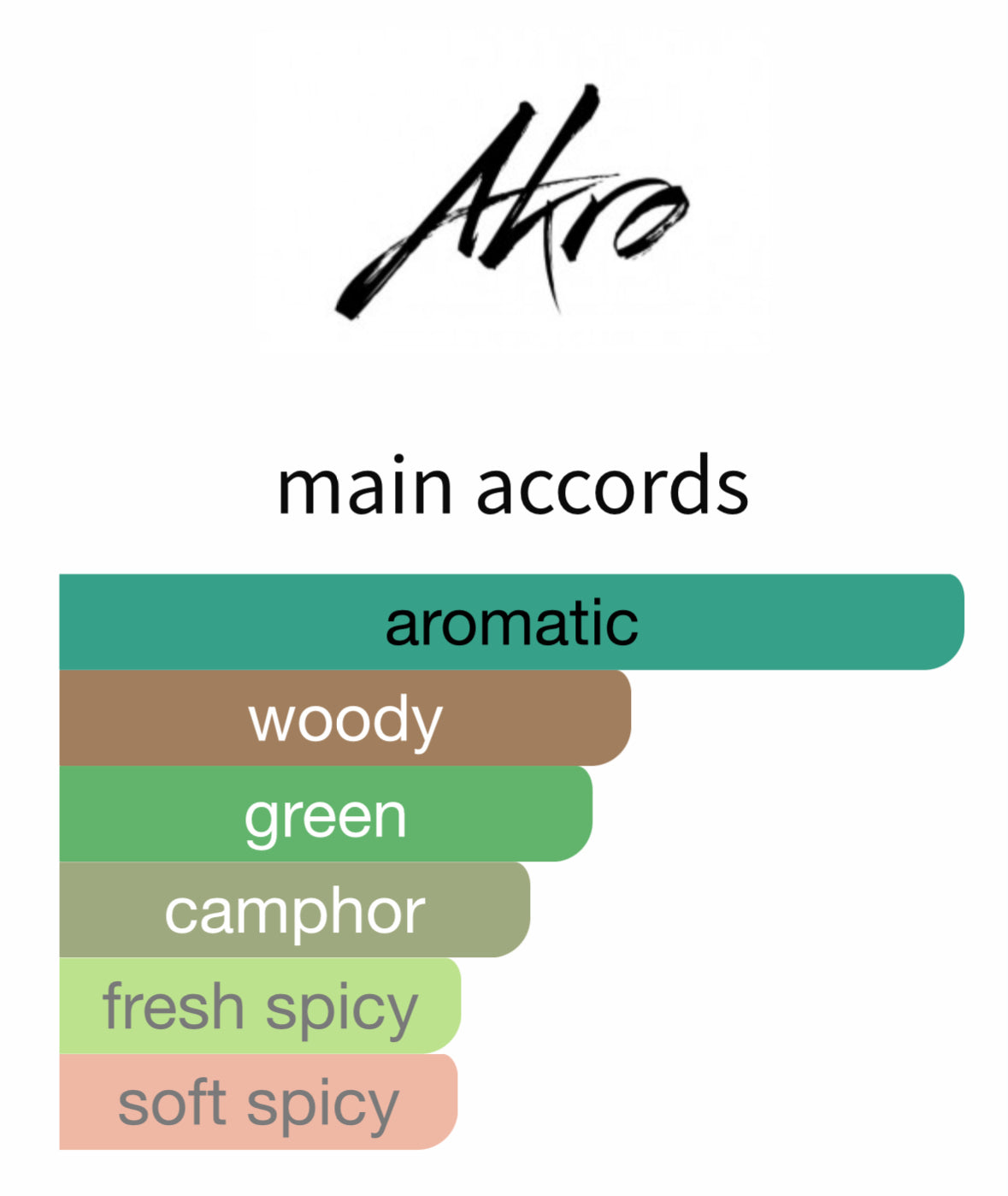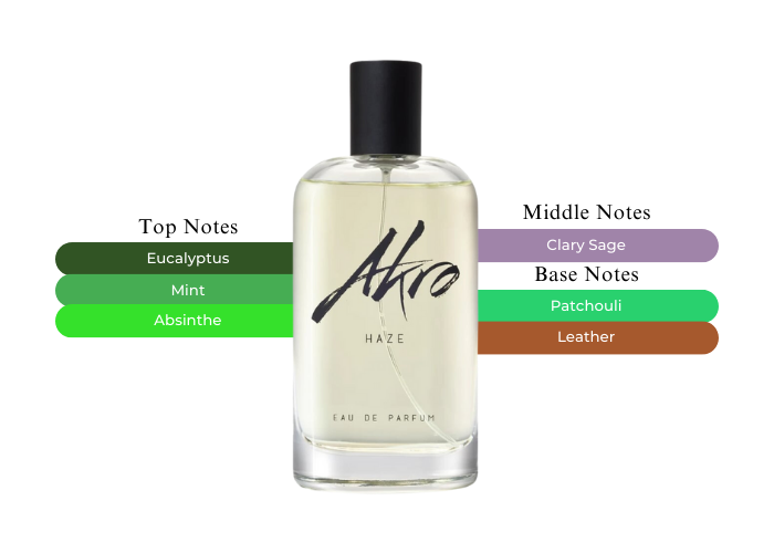 Akro Haze was inspired by nature, with top notes of mint and eucalyptus; middle notes of sage; base notes of patchouli and leather. It combines green herbs that would make you feel confident and fearless.