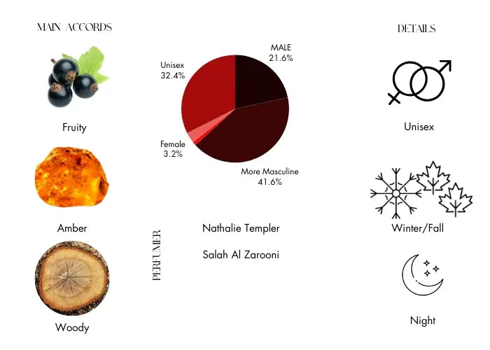 The scent finishes with an indulgent base of Siam benzoin, lush vanilla, and resinous labdanum, leaving a lasting impression that is both sensual and empowering.