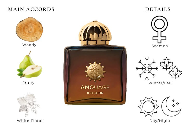Imitation Woman begins with a delightful blend of Rose, Ylang Ylang, Orange Blossom, and Jasmine, offering a captivating floral experience. The heart notes of Blackcurrant Buds and Aldehydes infuse the fragrance with elegance and mystery. It concludes with a warm and inviting base of Incense, Sandalwood, and Patchouli. Dive into this olfactory tribute to a remarkable time and appreciate the artistry behind Imitation Woman.
